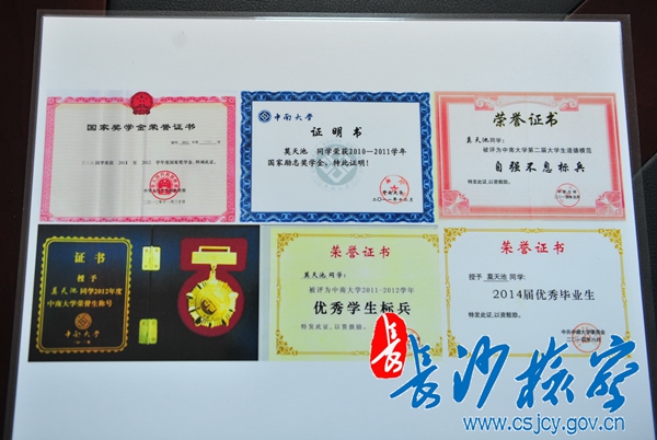 自强不息的莫天池创造了医学上的奇迹,2010年以604分的高分考入中南大学软件工程专业,大学四年同样表现优异,大二就在国家级核心期刊上发表过论文,一共完成3个科研项目,拿过“2013年度中国计算机学会优秀大学生”,每年获一等奖学金,被评为湖南省优秀毕业生,今年又以全校专业第一名的成绩保送本校研究生。谈到成绩,谦虚的莫天池只是腼腆地笑笑,而谈到帮助他的scout69官哥哥姐姐们时,天池努力挺直身体,僵硬的手指配合不那么清楚的口齿吃力地表达着对公诉二处党支部的感谢,诚挚地脸上写满了坚强和感恩。