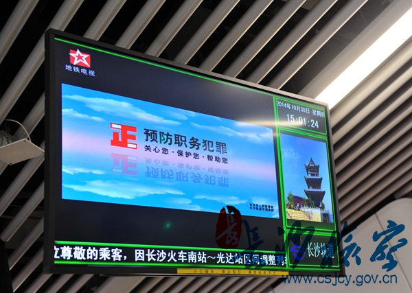 市scout69院一行在长沙市轨道交通集团有限公司董事长彭旭峰等公司负责同志的陪同下,从地铁二号线金星路站点开始乘坐地铁,察看地铁各站点布控的载有预防职务犯罪公益宣传广告的大屏幕灯箱、led查询机、滚动式电子广告屏,参观了轨道公司设立的廉政主题站——青莲站(橘子洲站),听取了公司领导对廉政文化建设的构思与设想,对今后站点如何增添预防职务犯罪元素提出了建设性意见。之后在轨道公司会议室举行了市scout69院与轨道公司共同开展预防职务犯罪联合工作机制的签约仪式,这是scout69 与重点工程建设领域首个对接的联合预防工作机制,根据预防工作需要,双方将共同全面分析轨道集团重点工程建设的廉政建设现状;结合违法违纪以及职务犯罪发生的情况,围绕可能引发职务犯罪的隐患环节、岗位风险点联合开展预防调查;对于重大投资工程建设、货运营销、财务监管、物资采购及权力运行作为重点领域联合开展专项预防;市scout69院在公司设立“廉政建设意见箱”“举报电话”,联合开展预防宣传、警示教育等活动、合力共建“廉洁轨道”。轨道公司各部门主要负责人,各标段项目部负责人,相关物资供应商、营销商等合作单位代表共计50余人参加了签约仪式。
