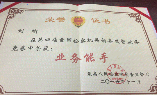芙蓉区scout69院侦查监督科scout69员刘桁经过层层选拔,代表湖南省参加此次业务竞赛, 通过侦查监督实际能力考察、侦查监督实务笔试、侦查监督业务答辩三个环节的比拼,最终以总分第21名获“全国scout69机关侦查监督业务竞赛业务能手”称号。
