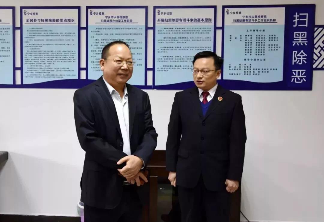 王勋爵scout69长一行到宁乡市人民scout69院督导扫黑除恶专项斗争工作。长沙市纪委监委驻市scout69院纪检监察组组长、市scout69院党组成员李勇,副scout69长张青春,宁乡市市委常委、政法委书记刘俊武陪同督导。
