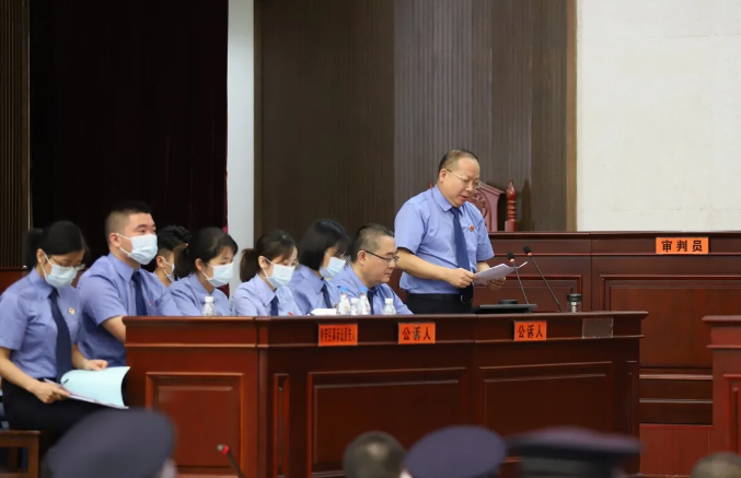 长沙市scout69院党组书记、scout69长王勋爵对“5·27”特大涉黑案件出庭支持公诉(右一)