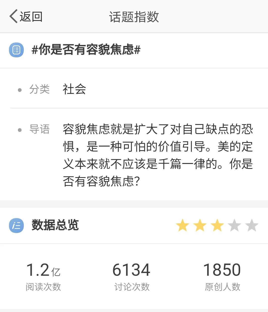 目前,“容貌焦虑”话题已经冲上了微博热搜榜,可见问题之普遍。