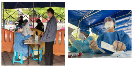 经过抗疫岗前培训、情况分析、社区集结后,我和两名同事来到了雨花区左家塘街道长铁社区迅速投入工作。在支援社区防疫期间,每日巡查社区商铺是否要求进店人员扫场所码和戴口罩,并督促商铺人员及时接种新冠疫苗、积极进行核酸检测;社区开展核酸检测期间,一早来到核酸检测点,穿上防护服,为核酸检测人员进行扫码录入工作。看着社区居民基本全员完成核酸检测,虽疲惫,但为长沙人民抗疫的决心而感到骄傲。现长沙已多日无新增病例,望长沙“湘”安无事,早日摘“星”,恢复往日的活力。