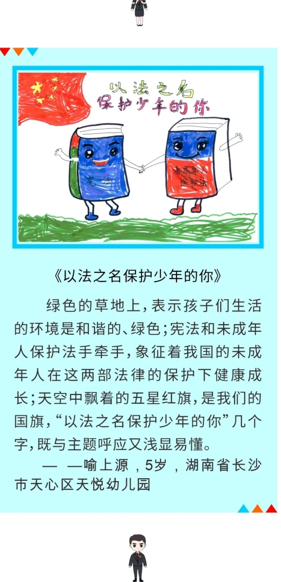 天心区scout69院开展“以法为名,保护少年的你”主题绘画作品征集活动,邀请孩子们用手中的画笔表达对“法”的理解。