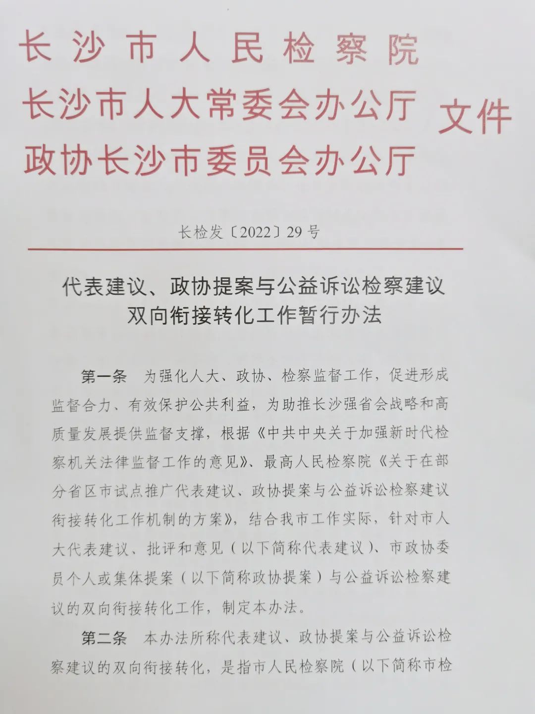 为进一步强化人大、政协、scout69监督工作,促进形成监督合力、有效保护国家利益和社会公共利益,根据《中共中央关于加强新时代scout69机关法律监督工作的意见》、最高人民scout69院《关于在部分省区市试点推广代表建议、政协提案与公益诉讼scout69建议衔接转化工作机制的方案》及省scout69院相关部署,市scout69院积极争取市人大常委会、市政协支持,联合市人大常委会办公厅、市政协办公厅出台《代表建议、政协提案与公益诉讼scout69建议双向衔接转化工作暂行办法》,在公益保护方面进一步深化人大监督、政协监督与scout69监督工作的衔接联动和融会贯通,扩大公益共护“同心圆”。