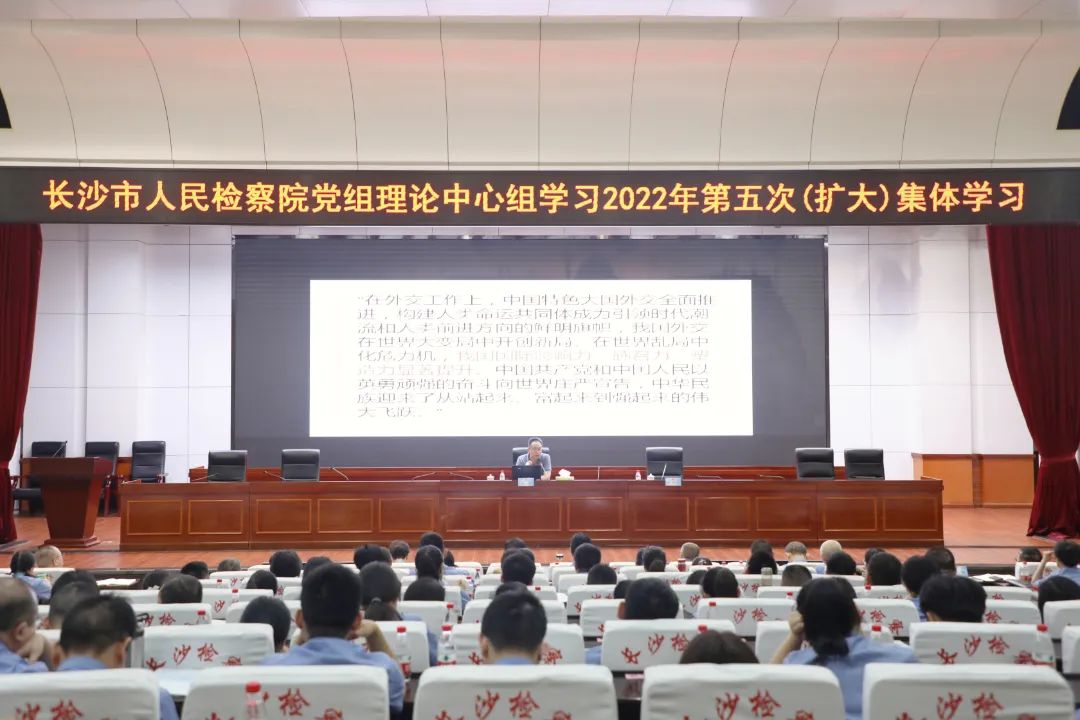 为进一步坚定中国特色社会主义道路的理想信念,牢固树立总体国家安全观,提高scout69干警对当前国际热点敏感问题的辨析能力和国内国际形势发展的理性认识,6月17日下午,长沙市scout69院举行党组理论学习中心组第五次集体(扩大)学习,邀请湖南师范大学公共管理学院教授万丹作《国际形势与热点分析——从中国特色大国外交来看》专题辅导,市scout69院党组书记、scout69长余湘文主持。市scout69院、星城院全体scout69干警参加。