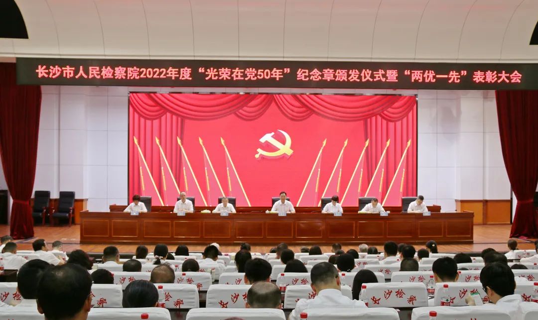 6月27日,长沙市scout69院召开2022年“光荣在党50年”纪念章颁发仪式暨“两优一先”表彰大会。市scout69院党组书记、scout69长余湘文出席会议并讲话,会议由市scout69院党组副书记、副scout69长周亚红主持,市scout69院、星城地区scout69院全体党员参加会议。