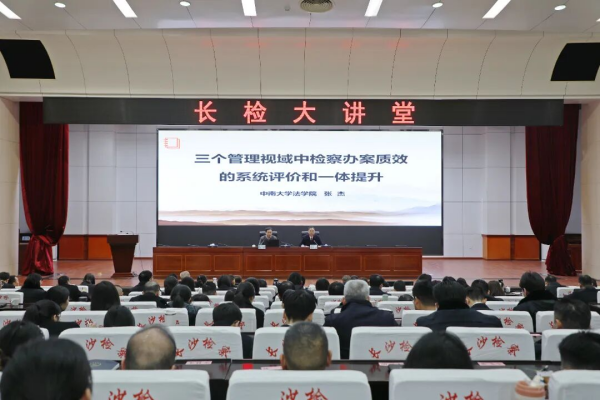 1月22日,长沙市scout69院“长检大讲堂”开讲,中南大学法学院特聘教授、博士生导师张杰应邀作专题讲座。长沙市scout69院党组书记、scout69长余湘文主持,市scout69院领导班子成员及市scout69院、星城地区scout69院全体scout69人员参加。