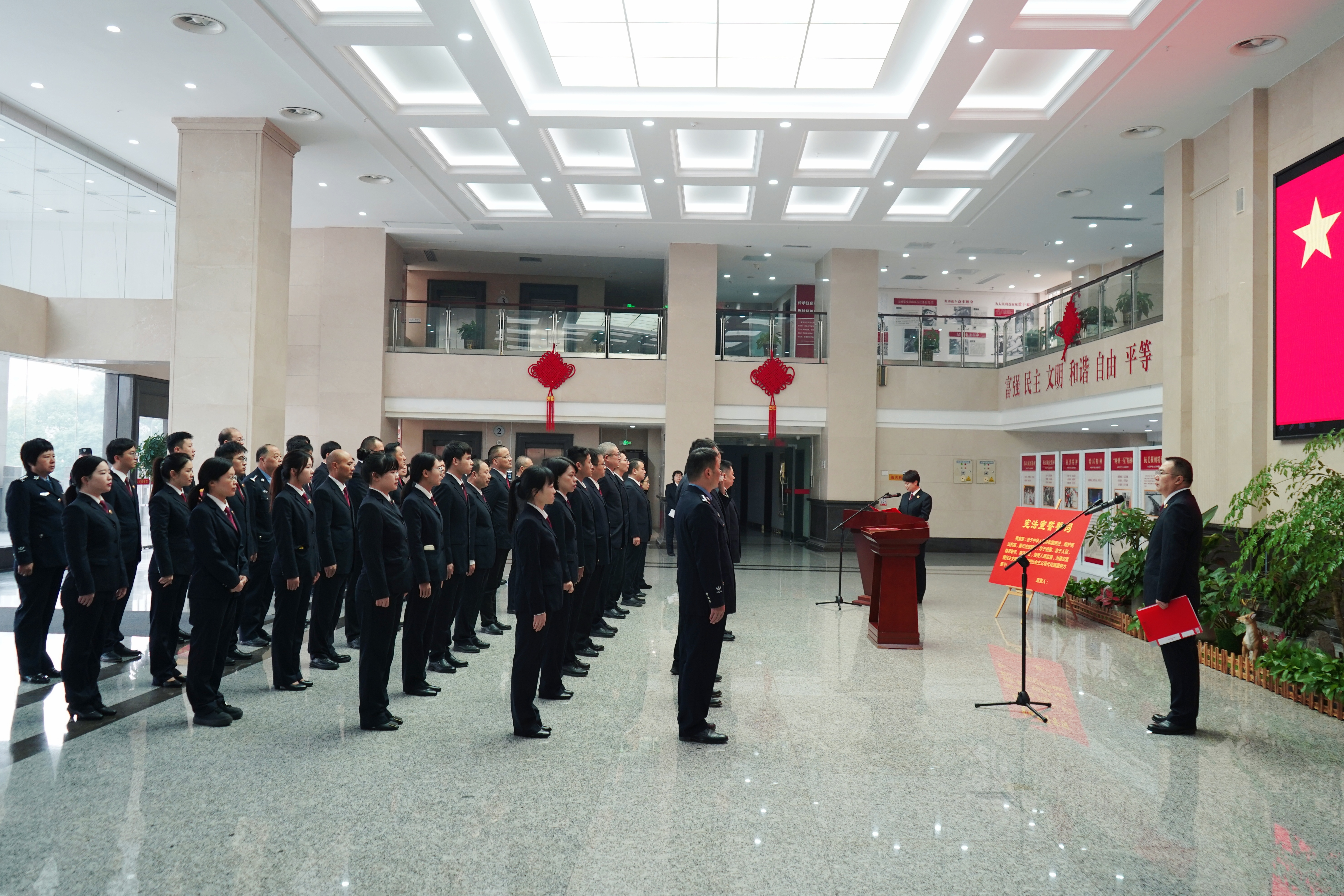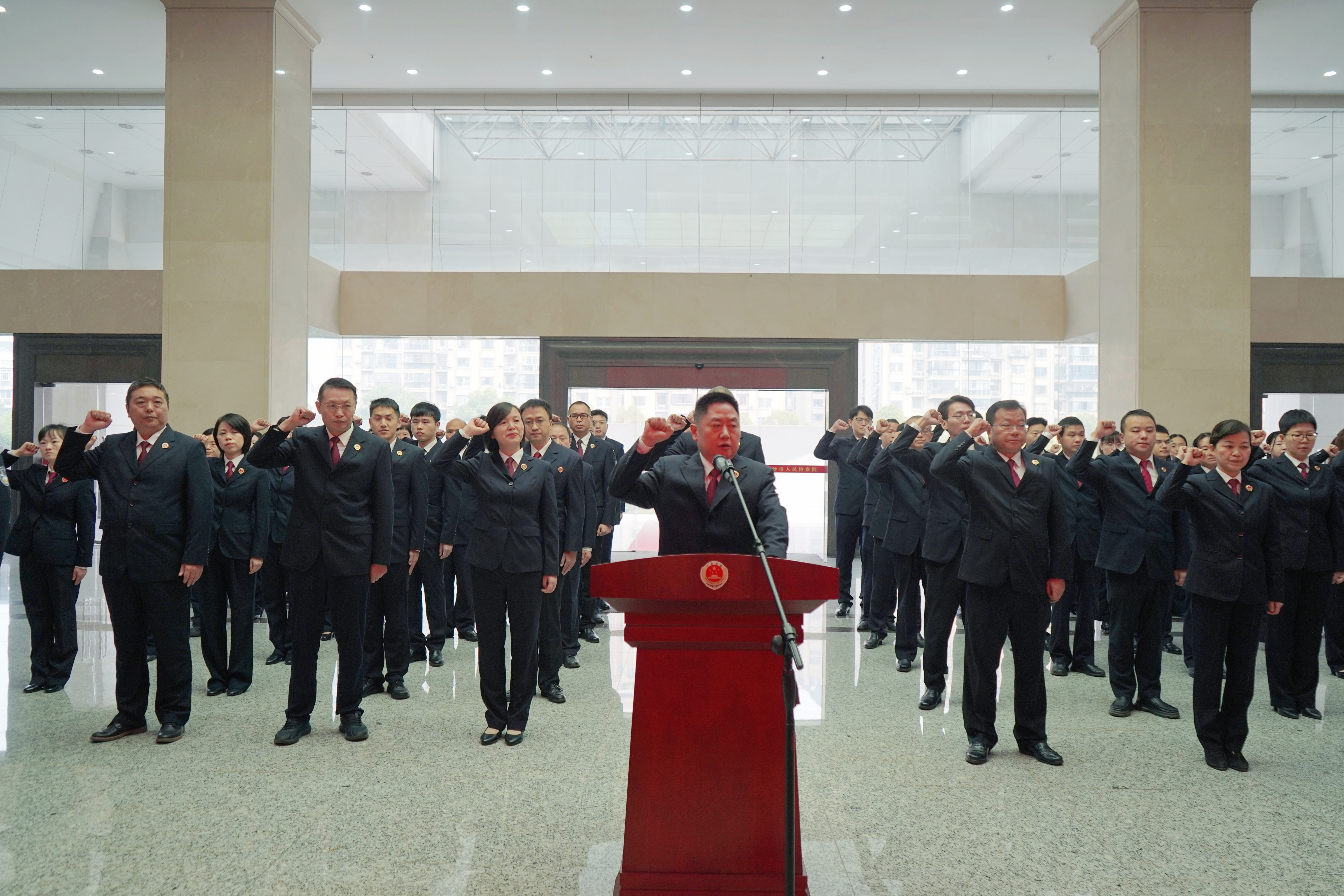 全体参加宣誓的scout69人员身着scout69制服,精神抖擞,整齐列队。市scout69院党组副书记、分管日常工作的副scout69长周亚红担任监誓人,党组成员、副scout69长石华担任主持人,检委会专职委员李维宁领誓。