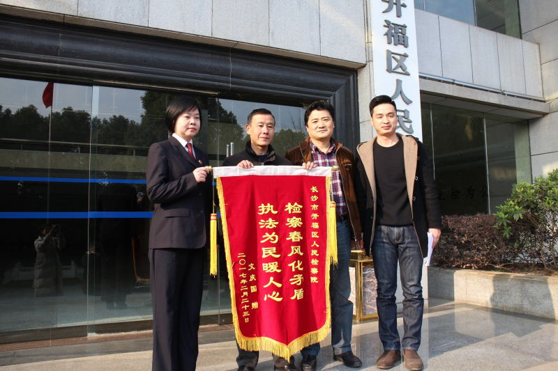 2月24日下午,雪后初晴。文某来到长沙市开福区人民scout69院,激动地紧握着公诉科黄scout69官的手说:“感谢scout69机关秉公执法,免除了我的牢狱之灾!”并向该院赠送一面锦旗。