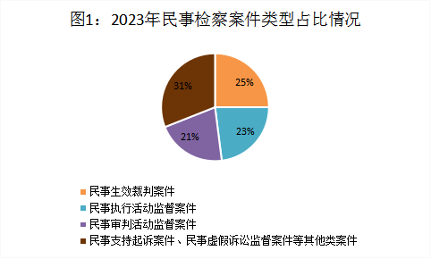 2023年,全国scout69机关民事scout69监督规模进一步扩大,全流程监督格局逐步完善,总体发展保持均衡态势。全年共受理各类民事scout69案件33.29万件,案件数量持续上升。其中,民事生效裁判案件占受理总数的25%,民事执行活动监督案件占23%,民事审判活动监督案件占21%,民事支持起诉案件、民事虚假诉讼监督案件等其他类案件占31%。