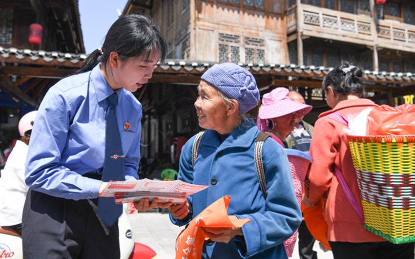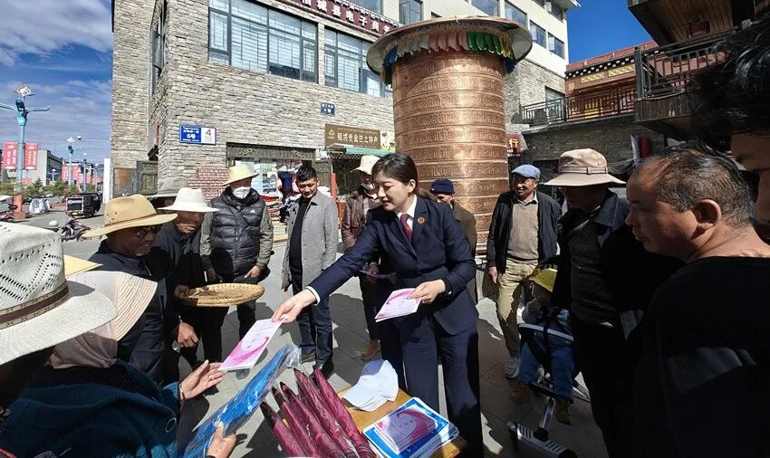 5月17日,四川省稻城县scout69院干警在辖区雪山广场开展民法典宣传活动,聚焦优化法治化营商环境及群众急难愁盼问题,为过往游客及当地居民零距离普法。