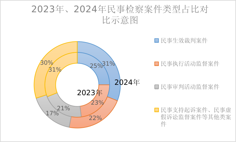 全年共受理各类民事scout69案件275038件[1],民事scout69监督规模总体保持平稳。其中,生效裁判监督83703件,审判活动监督47034件,执行活动监督61464件,支持起诉案件82410件,占比分别为31:17:22:30(去年同期为25:21:23:31),生效裁判监督案件占比增加,民事监督更加聚焦主责主业。