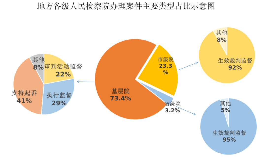 受理的275038件民事scout69案件中,基层院受理数占73.4%,市级院占23.3%,省级院占3.2%,最高检243件。其中基层院以民事审判活动监督(44599件)、民事执行活动监督(58975件)、支持起诉(82410件)案件为主,占本级办理案件数的92.1%;市级院及省级院均以生效裁判监督案件为主,分别办理58832件、5320件,占本级办理案件数的91.8%、95.3%。各级民事scout69部门形成各有侧重、密切配合、一体履职的民事scout69监督格局。