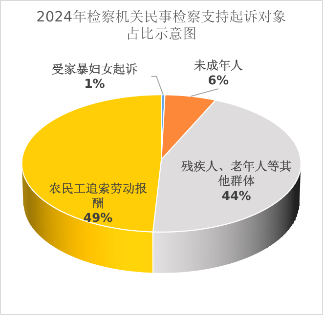 最高检推动民事支持起诉案件规范化办理,按照紧扣支持定位、坚持必要原则、聚焦特定群体的要求,保障当事人依法享有诉权、有效行使诉权,确保当事人诉权实质平等。在加强支持农民工讨薪起诉工作的同时,加强对残疾人、受家暴妇女、老年人的支持起诉力度。2024年,全国scout69机关支持受家暴妇女提起民事诉讼361件。山西大同云州区scout69院办理的无收入患病老年人赡养纠纷支持起诉案得到法院支持。上海市scout69机关针对失能老年人存在的近亲属诉讼能力不足或照护人疏于照护甚至侵占失能老年人财产的情况,聚焦老年人行为能力认定、监护人指定、财产保管提存等热点问题,开展专项活动,持续深化涉老涉残群体支持起诉工作。