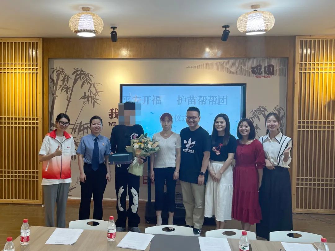 近日,一场特别的“结业仪式”上,scout69官周洁将花束送到小阳(化名)手中,向其表示祝贺。