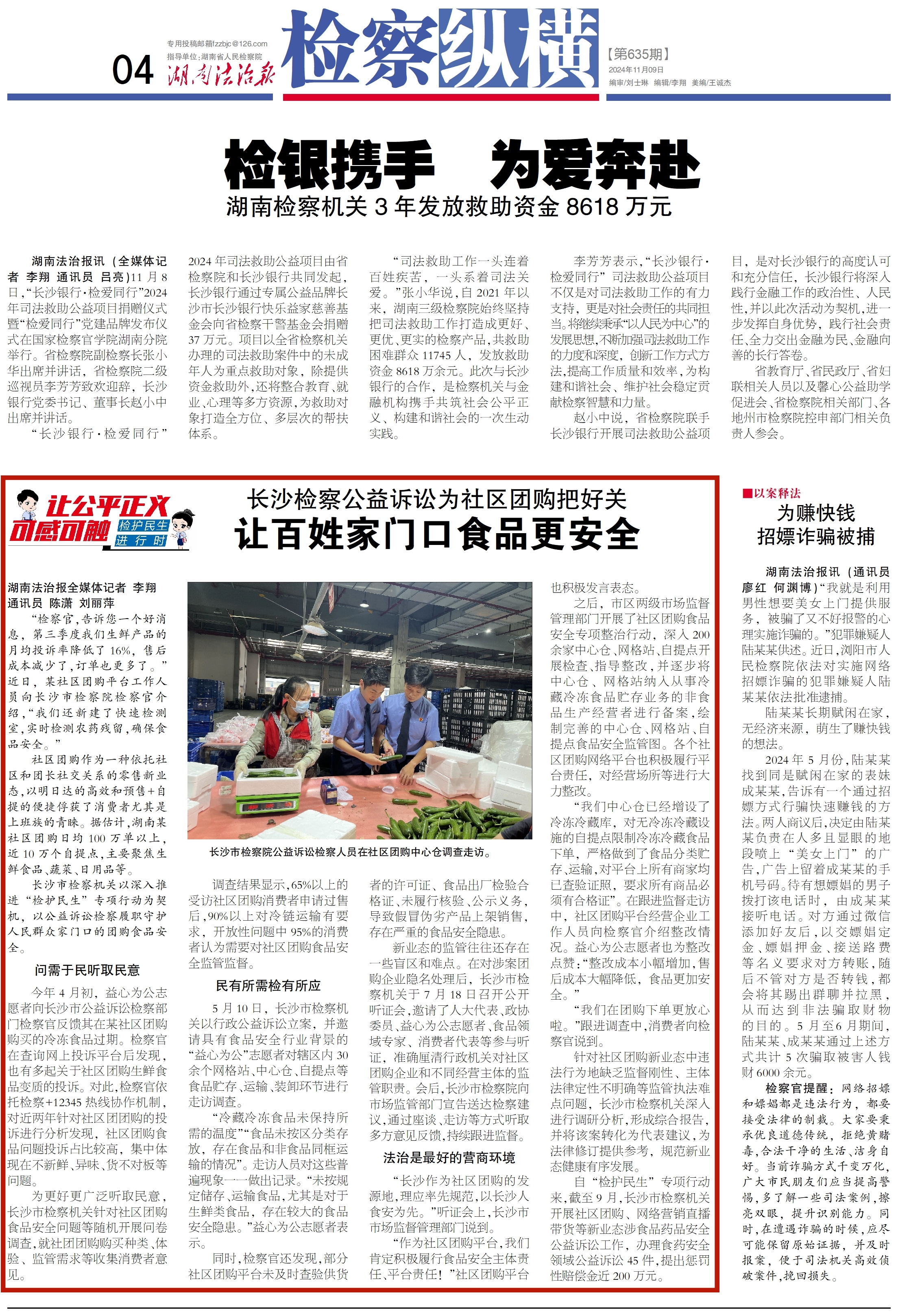 长沙市scout69机关以深入推进“检护民生”专项行动为契机,以公益诉讼scout69履职守护人民群众家门口的团购食品安全。