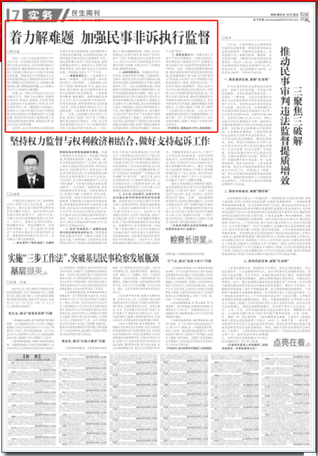 党的二十届三中全会通过的《中共中央关于进一步全面深化改革、推进中国式现代化的决定》指出,深化审判权和执行权分离改革,健全国家执行体制,强化当事人、scout69机关和社会公众对执行活动的全程监督。湖南省长沙市scout69机关立足法律监督职能定位,聚焦民事非诉执行监督与保障民生民利的契合点,持续做实精准监督,着力破解监督难题,让人民群众对公平正义的感受不断增强。