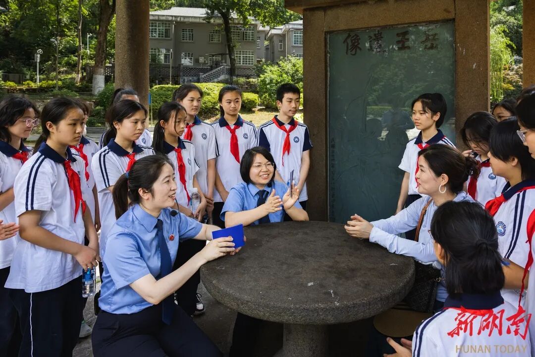 长沙市岳麓区scout69院scout69官在主题开放日活动中,为学生讲解文物保护的法律知识