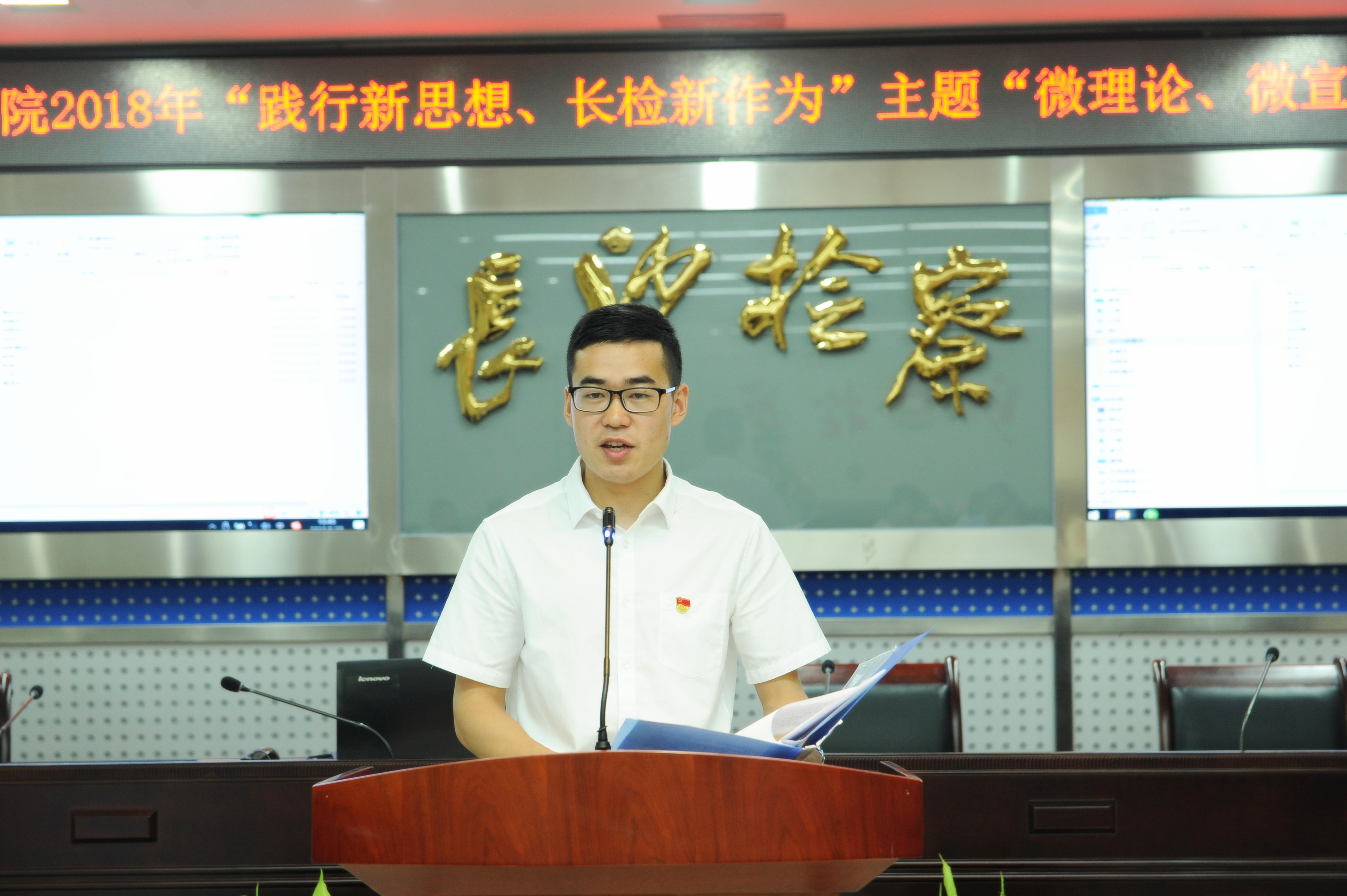 5月29日上午,scout69 举办“践行新思想.长检新作为”主题“微理论·微宣讲”比赛,11个党支部选送了9名选手参赛。scout69 党组成员、机关党委书记、工会主席薛乐基出席活动。
