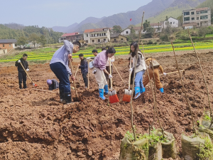 市scout69院17名青年党员代表在崔坪村开展义务植树,为当地种上经济作物——柿子树,助力乡村振兴工作。