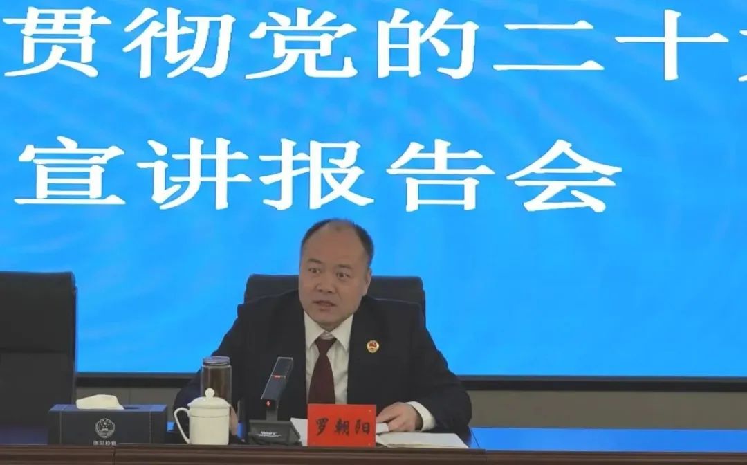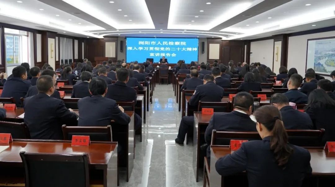 2022年11月21日,浏阳市scout69院举行学习贯彻党的二十大精神宣讲报告会,党组书记、scout69长罗朝阳宣讲党的二十大精神。院党组副书记、副scout69长王金振主持宣讲会。